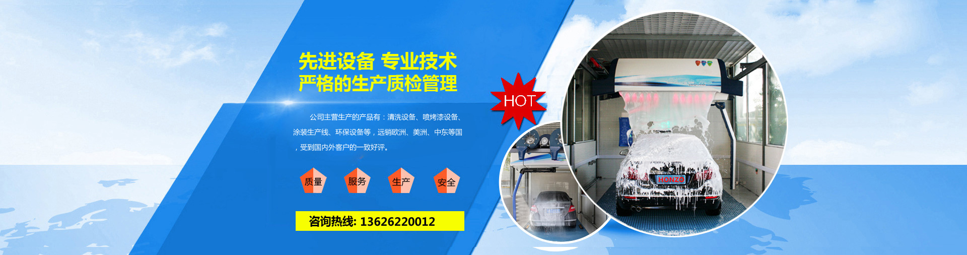公司主營生產的產品有:清洗設備、噴烤漆設備、涂裝生產線、環保設